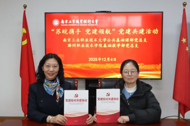 12月4日下午,公共基础课部党总支与滁州职业技术学院基础教学部党总支联合开展“苏皖携手 党建领航”党建共建活动。滁州职业技术学院基础教学部党总支书记李晓辕,公共基础课部党总支书记王丽丽,党总支副书记、主任金跃强,副主任江颖,基础教学部党总支书记李晓辕、副主任刘杰(主持工作)及双方单位代表共同参加了签约仪式。