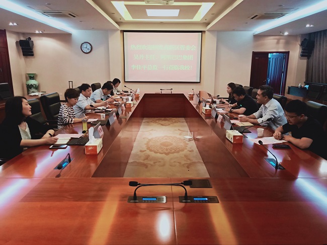 6月5日上午,栖霞高新技术产业开发区管委会吴丹主任、阿里巴巴集团战略发展部李佳平总监一行来必赢官网交流、洽谈合作。必赢官网副校长崔新明,科技处、发展合作处以及商务贸易学院负责人及部分老师参加了会议。