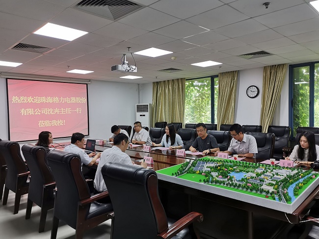 5月24日上午,珠海格力电器股份有限公司文化培训传播中心沈卉主任一行来必赢官网交流工作。副校长崔新明、科技处、发展合作处人员参加了会议。