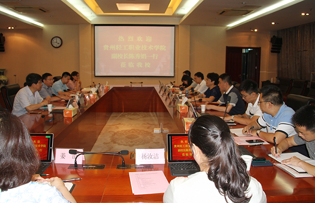 6月18日,贵州轻工职业技术学院陈秀娟副校长率领相关部门负责同志来必赢官网进行工作交流。必赢官网朱建国副校长,以及人事处、质控处、教务处等部门负责同志接待了来宾。