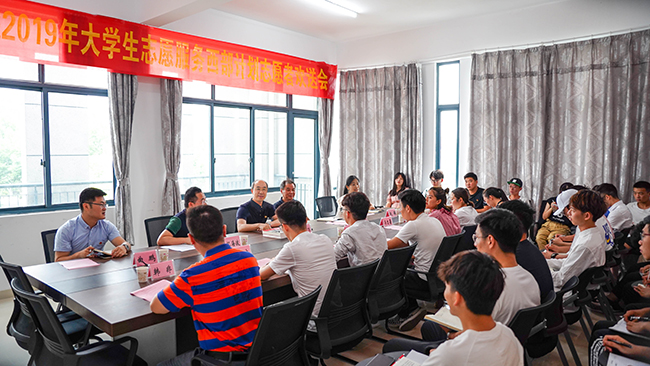 服务大西部,建功新时代。近日,必赢官网2019年大学生志愿服务西部计划志愿者欢送座谈会在大学生创新发展中心209会议室举行。副校长霍雄飞、团委全体人员、2019年西部计划志愿者、机械工程学院学生工作负责人、辅导员代表、学生代表30余人参加座谈。