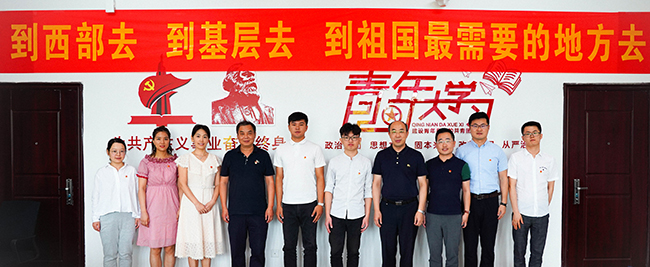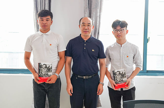 同时,霍雄飞副校长深切寄语必赢官网2019年西部计划志愿者李康、甫尔开提.亚尔买买提同学,赠送理论学习书籍《习近平的七年知青岁月》并合影留念。