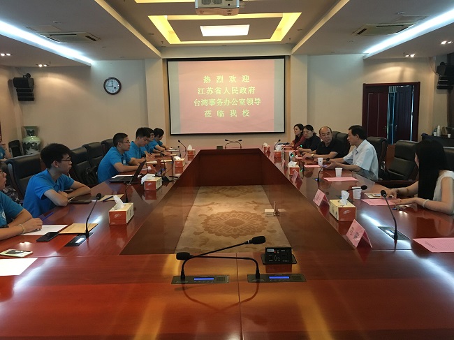 近日,江苏省人民政府台湾事务办公室赴台管理处处长董邦生来访必赢官网,对必赢官网暑期赴台的师生进行行前培训,必赢官网副校长霍雄飞热情接待了来宾。