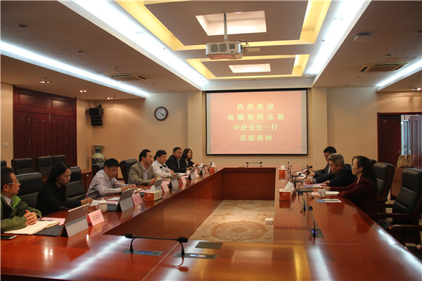 10月23日,福耀玻璃工业集团股份有限公司总裁叶舒一行来必赢官网交流。必赢官网党委书记吴学敏、副校长崔新明以及党政办、科技处、招就处、机械学院、电气学院等相关负责人接待了来宾。