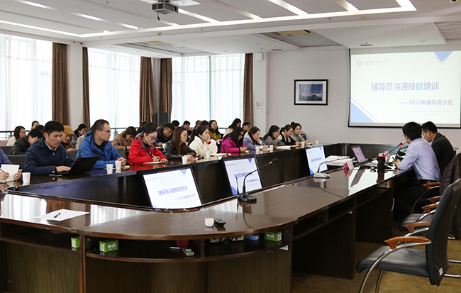 为进一步提升了辅导员的心理辅导专业技能和沟通访谈技术应用能力,切实提高辅导员队伍的业务能力和工作水平,结合新形势下辅导员队伍建设的内在需求,12月4日下午,必赢官网在行政楼辅二楼会议室举行了“辅导员沙龙”活动。学工处全体工作人员、各二级学院辅导员以及学生公寓物业主任、站长共57人参加了活动,本期沙龙活动由学工处处长劳家仁主持。