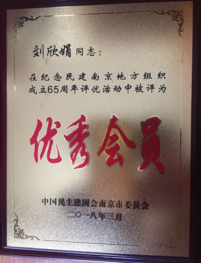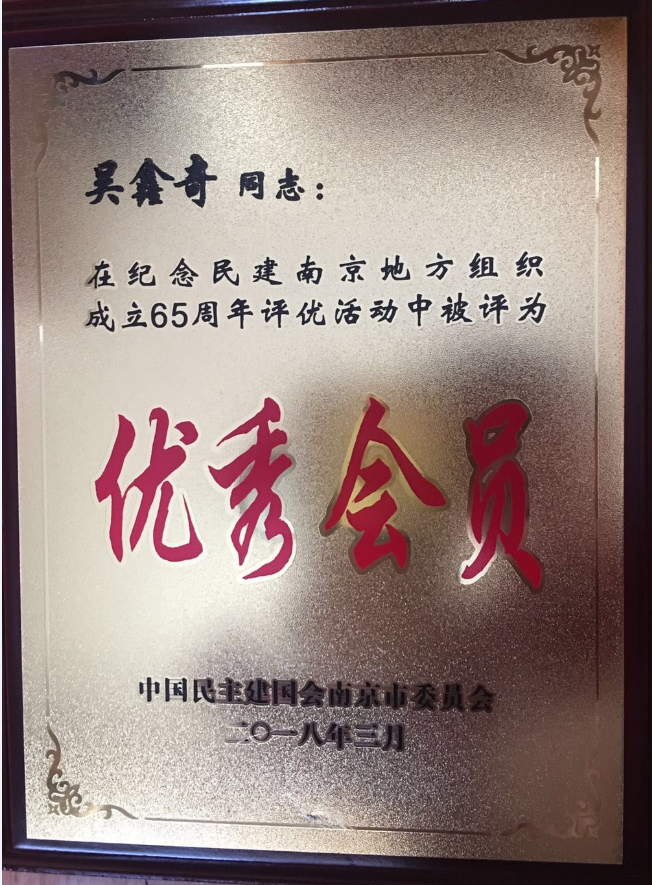 必赢官网民建南工院支部荣获“先进支部”称号,支部会员刘欣娟、吴鑫奇作为优秀会员获得表彰。