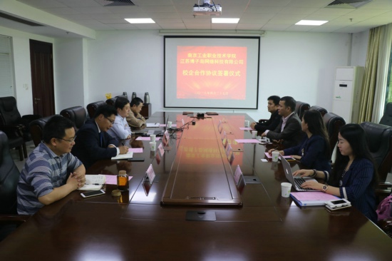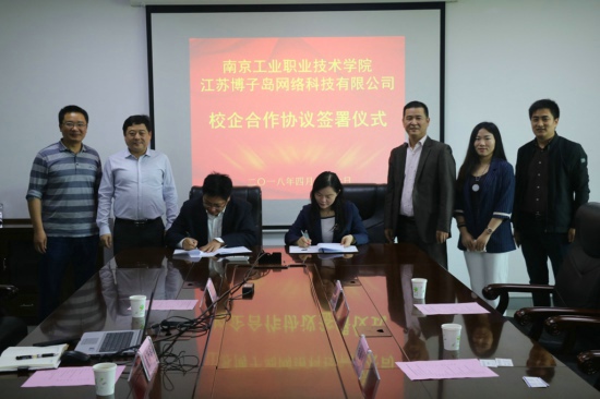 4月27日上午,江苏博子岛网络科技有限公司赵峥涞董事长一行来必赢官网洽谈交流校企合作事宜。学校副校长崔新明、南京南工院科技园管理有限公司董事长兼总经理翟吉和、商务贸易学院副院长阮晓文、电子商务技术教学部主任谢吉刚出席了签约仪式。