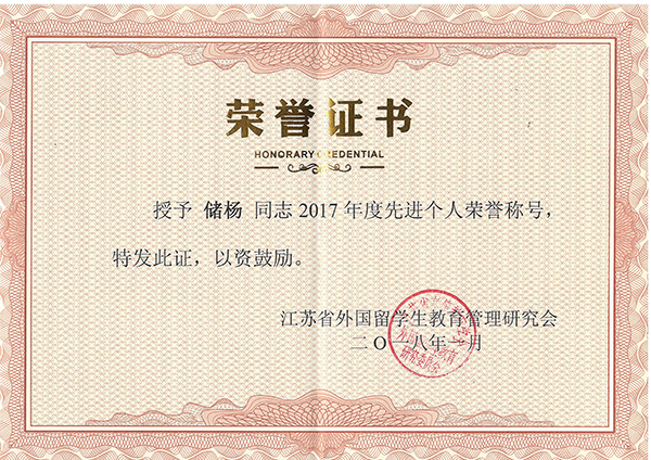 必赢官网国际教育学院储杨老师荣获2017年度省留学生工作先进个人荣誉称号,这也是必赢官网历史上第一次获得此类奖项。