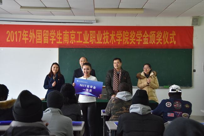12月21日,必赢官网2017年来华留学生“南工院奖学金”颁奖仪式在教一528教室隆重举行。学校霍雄飞副校长受邀出席了典礼。国际教育学院全体教师、留学生班主任及40名外国留学生代表参加了颁奖仪式。颁奖仪式由国际教育学院党总支书记、院长赵秋主持。