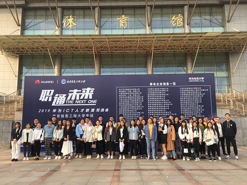 为增加2020届毕业生就业机会,学院积极搭建双选平台。10月19日,计算机与软件学院年级辅导员王倩玉带领42名毕业班优秀学生前往南京信息工程大学体育馆参加2019华为ICT人才联盟双选会。