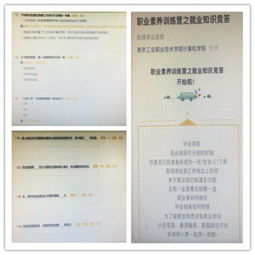 本次就业知识竞答活动题目涉及的内容广泛、类型多样,将《中华人民共和国劳动法》、《劳动合同法》“面试注意事项”、“五险一金”等毕业生必须掌握的就业知识均涵盖在内,让毕业生详细了解到就业时将遇到的问题和注意事项,给即将踏入社会的毕业生提前做好准备。截止24日活动结束,学院全体毕业生均完成线上答题,同时针对同学们的疑问,就业辅导员进行了一一回答。