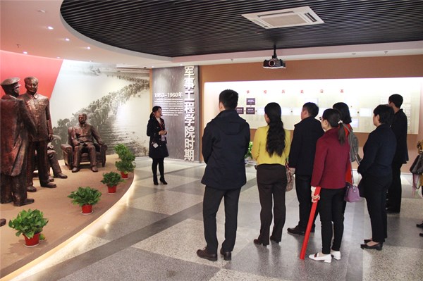 此次学习交流活动得到南京理工大学党委的大力支持和热情接待,南京理工大学党委组织部副部长董春秋、党委组织部正科级组织员王琼、胡伟、何蔚超、党委宣传部实境课堂教师尚文浩参加了研讨。学习交流中,董春秋介绍了南京理工大学党员教育实境课堂建设的基本情况,胡伟从教育资源、主要做法和教育成效三个方面进行了经验分享。南京理工大学“军工精神与党性教育”党员教育实境课堂以军工精神为切入点,通过大量的实物原型和生动的现场讲解,以国防现代化建设为缩影,集中展现党领导人民取得的伟大成就;并通过老一代优秀党员身上绽放的党性光芒,自觉激发青年党员“不忘初心、牢记使命,砥砺前行”。南京理工大学在军工精神、爱国主义、党性作风、创新发展等模块的党员教育培训中,坚持“三馆为主、多点联动”的实境教学模式,以兵器博物馆、祝榆生纪念馆、王泽山院士展等实境教学为主体,并与校史馆、校训牌坊、止戈园、和平园、任新民塑像、长征5号运载火箭实体模型等实境教学资源多点联动。会上,必赢官网机关第一党总支书记高宏彦、组教支部书记杨雨慧分别介绍了必赢官网党建工作、党员教育实境课堂建设等做法及体会,双方还就加强基层党支部建设、党员日常管理等方面进行了交流和探讨。会后,全体党员参观体验了兵器博物馆、祝榆生纪念馆及校史馆等实境课堂的现场教学。在学习参观过程中,党员们感觉到这样的实境课堂少了说教,多了体验式、情景式、互动式的学习教育体验,受益匪浅。
