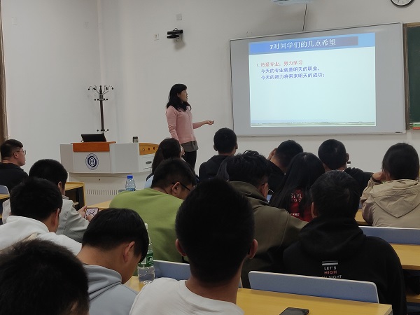 讲座伊始,李金热先向同学们展示了几组照片和视频,让同学们了解飞机机电设备维修这个专业的工作内容和就业前景。通过图片和视频展示详细地向同学们介绍了专业课程的学习内容以及未来可从事的工作岗位等一系列问题,她以自身经历提醒同学们在学习好基础课程的同时一定要加强英语和高数的学习,希望同学们能够认真对待。随后,李金热对全体新生提出了几点要求:1、在学习的过程中,不能仅仅依靠老师课上的教学还要靠自己课下的复习;2、在实训课程环节,一定要有吃苦耐劳的精神,认真实训;3、鼓励同学们积极参加学校的各种创新创业类大赛和行业类大赛,从而提高个人专业能力。