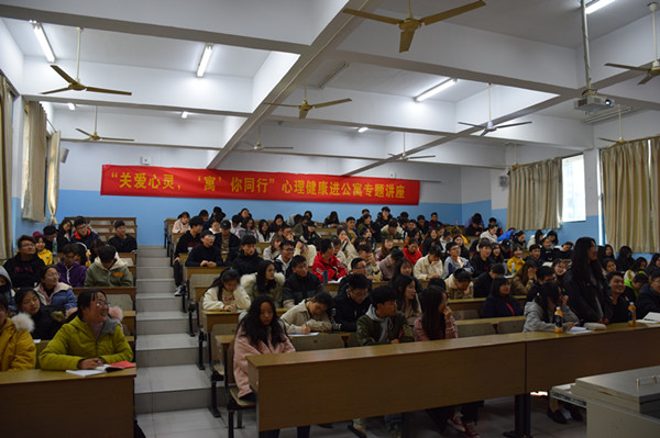 本次讲座以“健康心态,美好未来”为主题,曹加平首先从健康心态等于阳光心态加积极心态开始,结合同学们在生活中的具体事件详细阐述了阳光心态、积极心态的具体含义,接着分析了“你像那只狐狸”小测试中十种狐狸的特点,并且总结三点启发:1.合作共赢,2.放弃,3.替代、补偿,不要在挫折面前否定自己。曹加平还从学生和雇主两方面的角度分析了就业情况,并给同学们提出了中肯的建议。然后曹加平阐述了在宿舍生活中要遵守作息时间、人际交往等公共约定,并指出成熟的人要懂得自己的言行和环境相适应,并分享了压力与工作绩效关系图。最后的互动环节,同学们就自己关注的情感方面的问题,向曹老师进行了提问,曹加平给大家提出了合理的建议,并引导同学们树立正确的恋爱观。