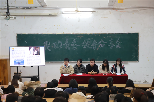 12月12日晚,艺术设计学院2019年“我的青春故事”分享会在敬业楼阶梯教室圆满举行。活动邀请了朱晨杨、陈翔、李雯珺、金苏娟、顾君五位即将毕业的优秀大三学子,向大一和大二的同学分享他们在南工院学习、工作、竞赛、生活等方面的青春故事,积极传递青春正能量,引导同学们规划好自己的大学生活。活动由团总支副书记丁健同学主持,来自艺术设计学院的近200名同学参加了此次活动。