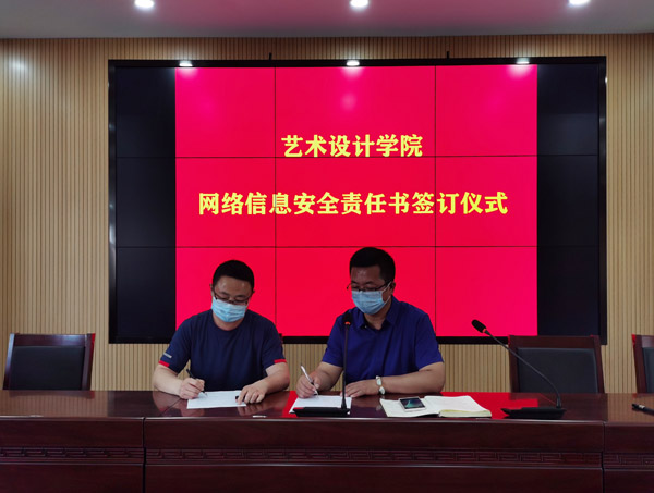 为进一步加强艺术设计学院各项工作科学合理、安全稳定、高效有序地推进,切实落实“一岗双责”,5月13日,艺术设计学院2020年度“落实全面从严治党责任书、教职工意识形态工作责任书、教职工师德师风责任书、网络安全责任书、三级/四级安全责任书”签订仪式在天堂校区六楼会议室举行。