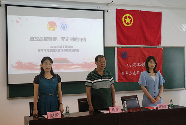 大会在共青团团歌中拉开帷幕。本次培训班经过理论学习、讲座培训、小组讨论等环节,按计划完成了各项培训任务,共有87名学员按期结业,数维1911樊华等26名同学被授予“优秀学员”称号。赵颖宣读了准予2020年机械工程学院青马班学员结业的决定和优秀学员名单。