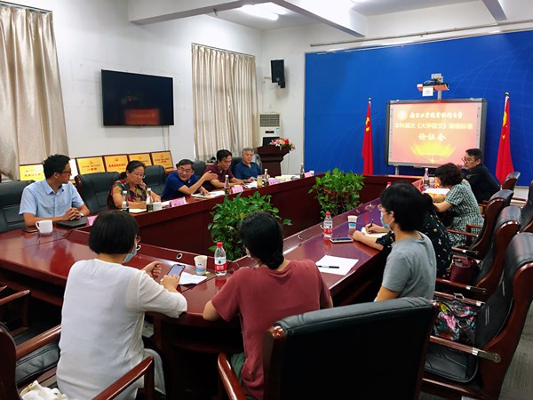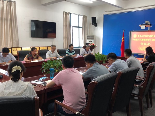 7月30日上午首先召开《大学英语》课程标准论证会,南京工业大学外国语言文学学院副院长、中国英汉语比较研究会外语教育技术专业委员会理事胡元江教授和金陵科技学院外国语学院副院长张志刚教授到会指导。在教研室主任张秀芹汇报、解读新大纲初稿后,两位专家首先就我国大学英语教学的总体状况、指导性政策、发展趋势以及本科职业教育与普通本科大学英语教学的区别等内容进行了说明,然后对必赢官网《大学英语》本科课程新标准进行了细致、认真的研究与指导,提出了宝贵的意见与建议。